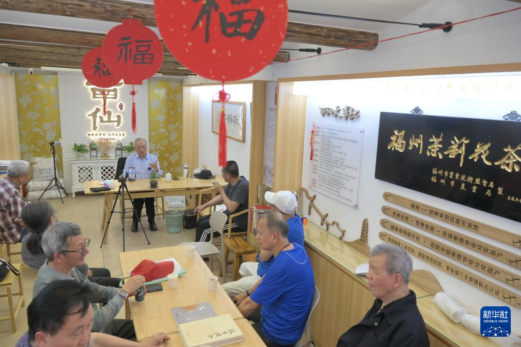 4月14日,福州民俗專家、閩都鄉學講習中心講師方琪(中)在福州大眾茶館“南仙茶攤”為群眾開展“福山福水福文化”講座。