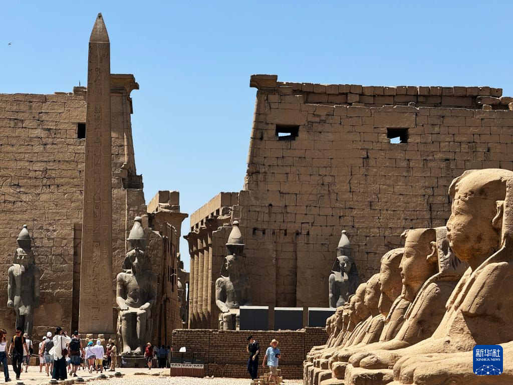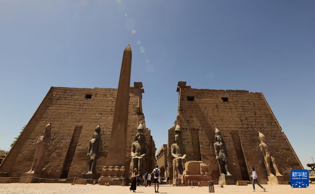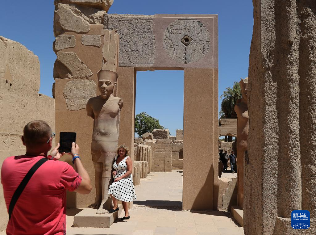 2024年4月8日,游客在埃及盧克索神廟拍照。