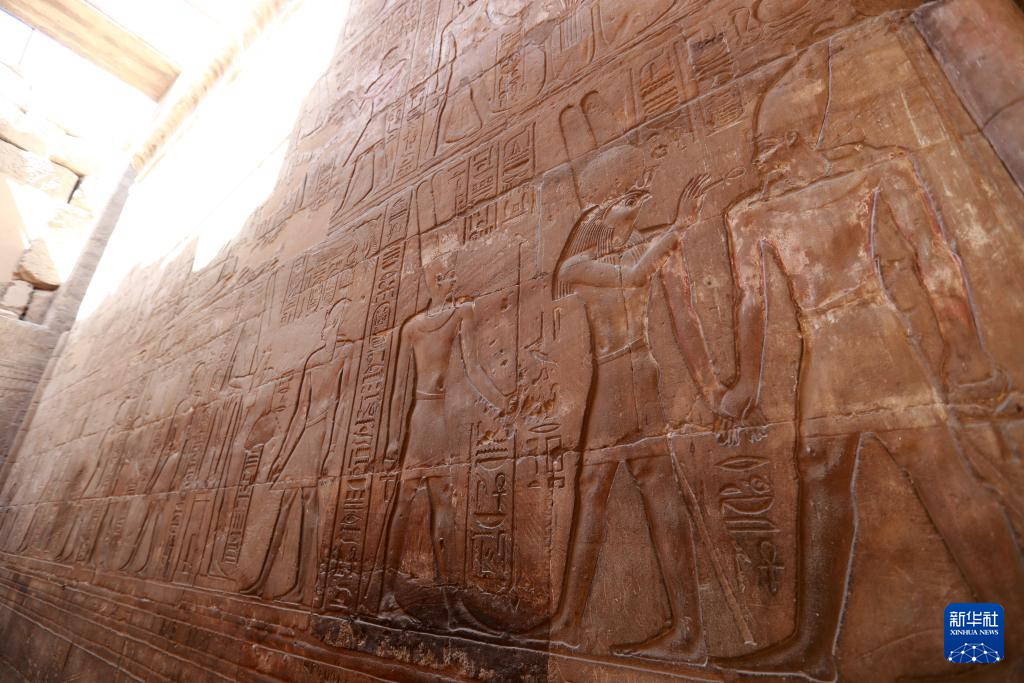 這是2024年4月9日在埃及盧克索神廟拍攝的浮雕壁畫。