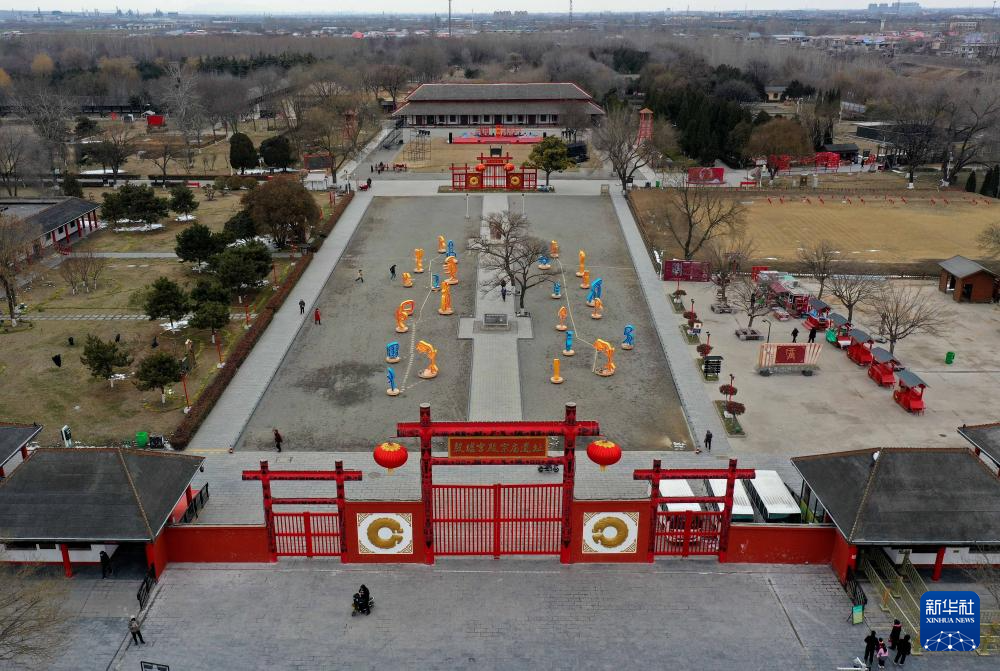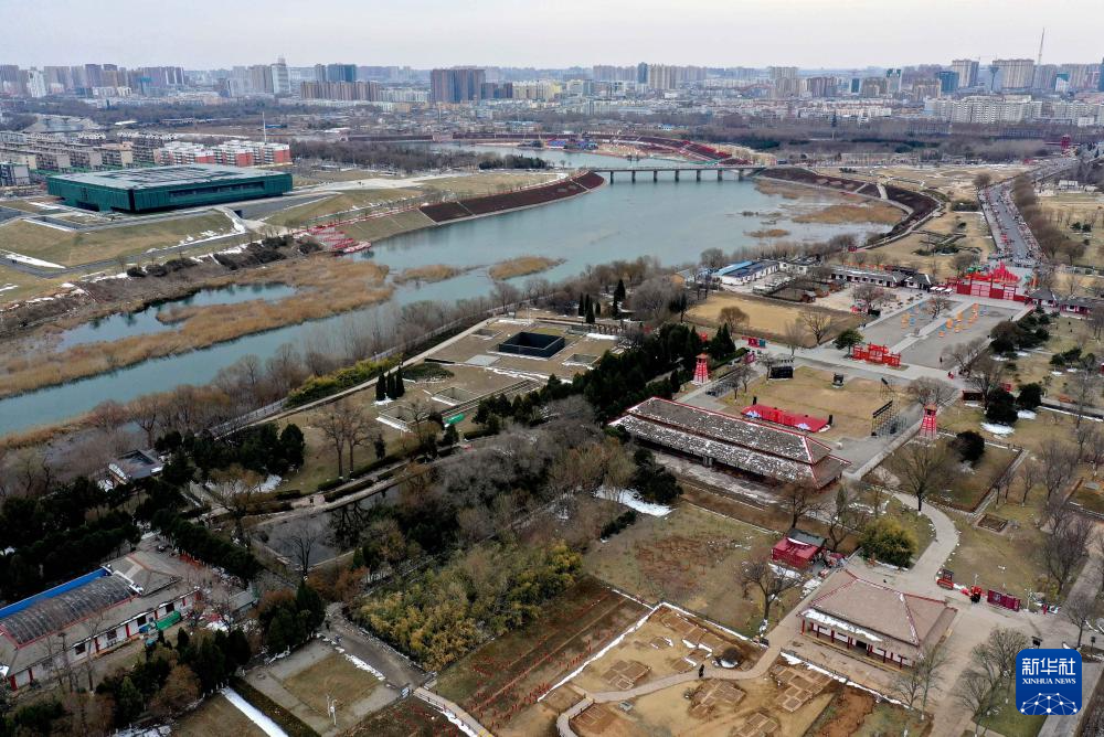 這是2024年2月23日拍攝的河南安陽殷墟宮殿宗廟遺址(無人機照片)。