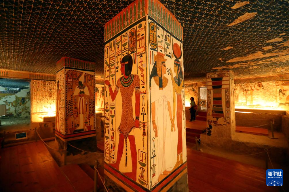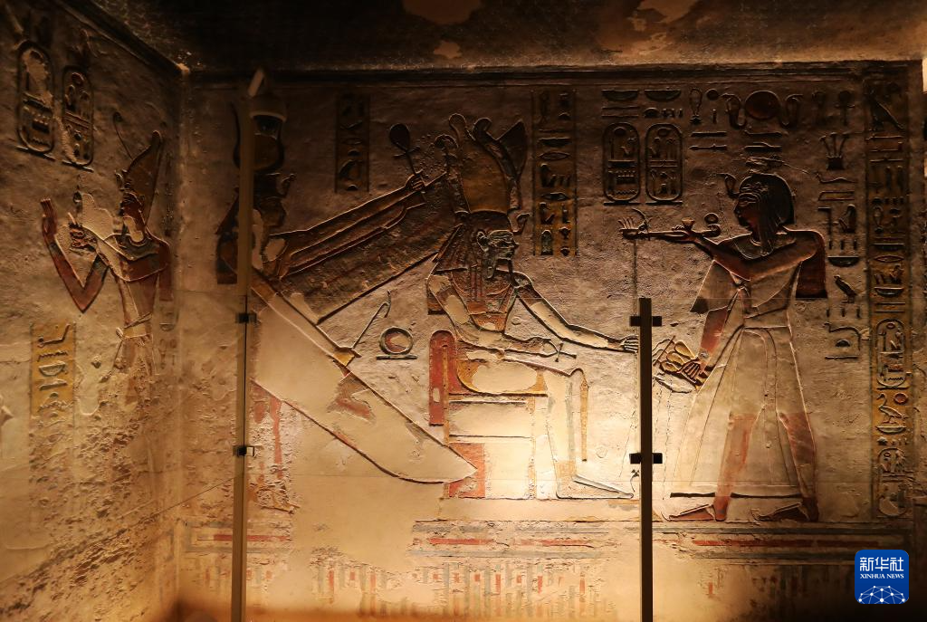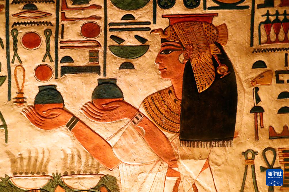 這是2023年1月24日在埃及盧克索王后谷拍攝的奈菲爾塔利地下陵墓壁畫。