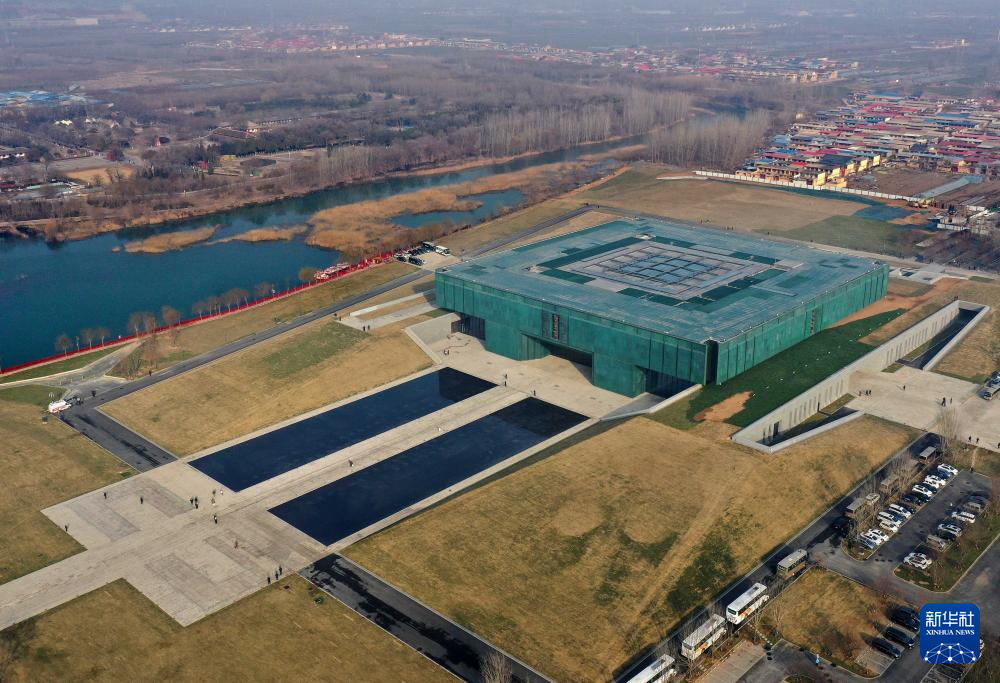 這是2024年2月26日拍攝的位于河南省安陽市的殷墟博物館新館(無人機照片)。
