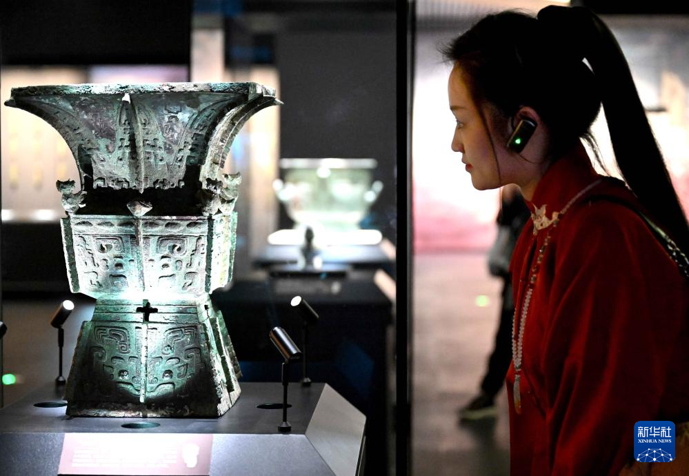 2024年2月26日,參觀者在河南安陽殷墟博物館新館內觀展。