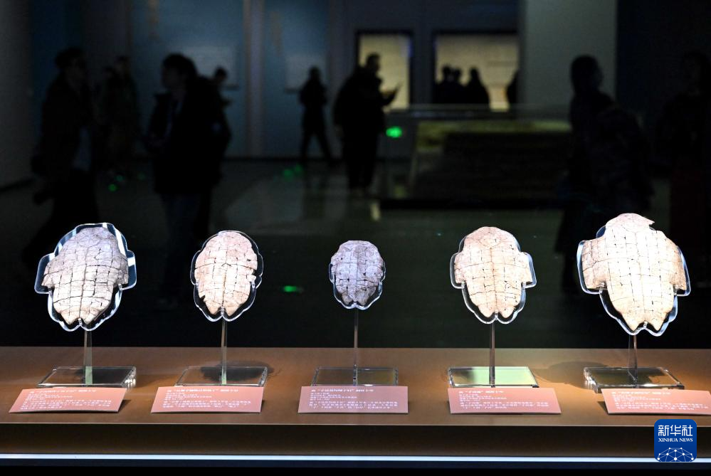 這是2024年2月26日拍攝的河南安陽殷墟博物館新館內展出的刻辭卜甲。
