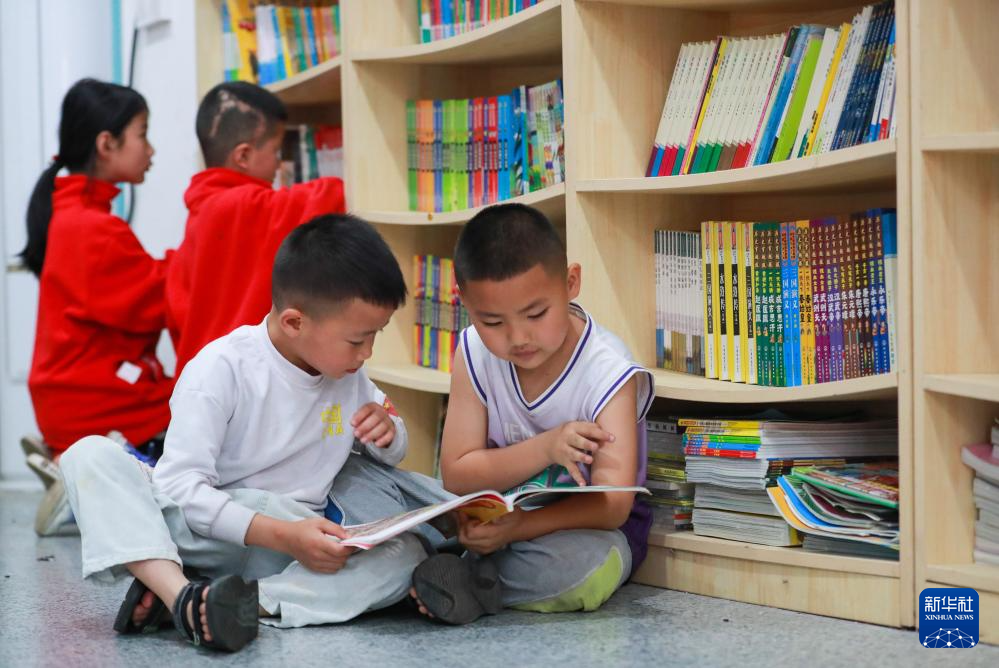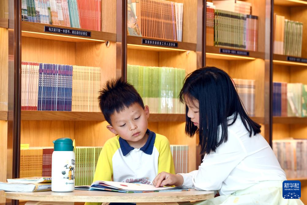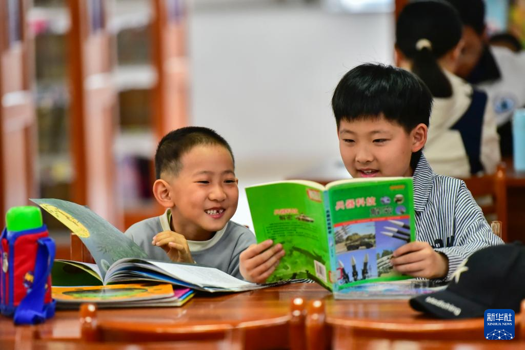 4月21日,小朋友在貴州省黔東南苗族侗族自治州從江縣剛邊壯族鄉三百河社區農家書屋閱讀圖書。