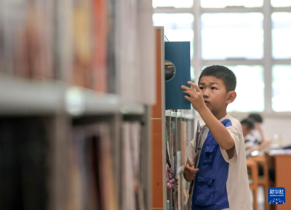 4月21日,小朋友在位于武漢市的湖北省圖書館閱讀圖書。