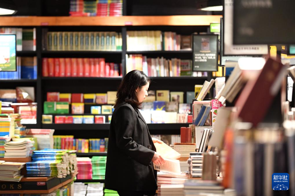 4月21日,顧客在貴州省仁懷市西西弗書店選擇書籍。