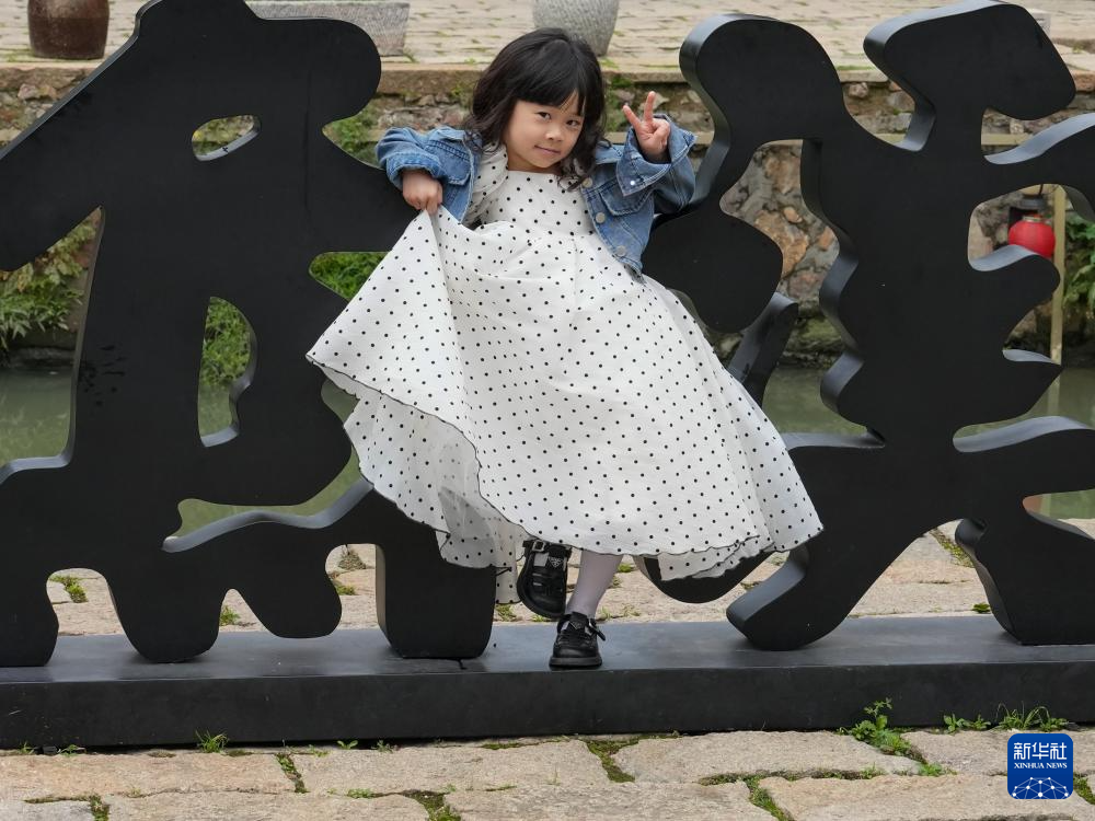 4月21日,小游客在常州焦溪古鎮休閑游玩。