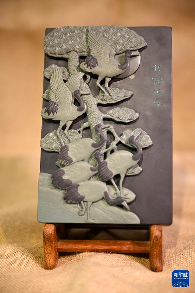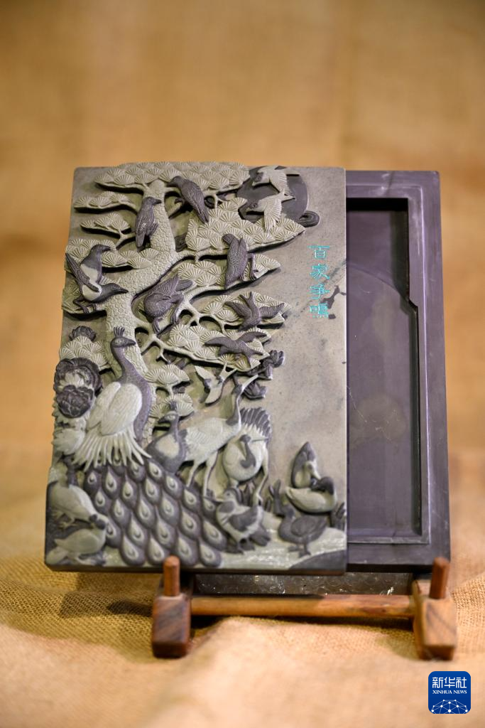 這是閆森林的賀蘭硯作品(4月15日攝)。