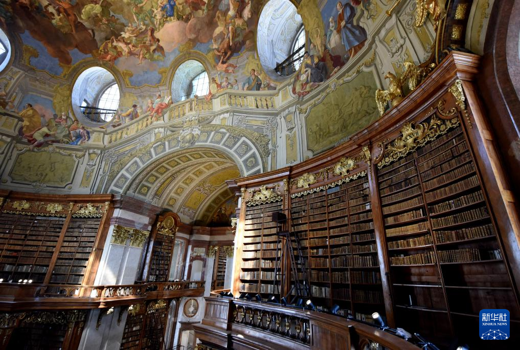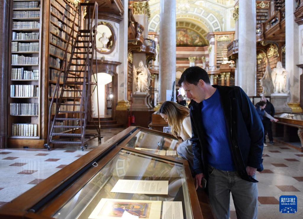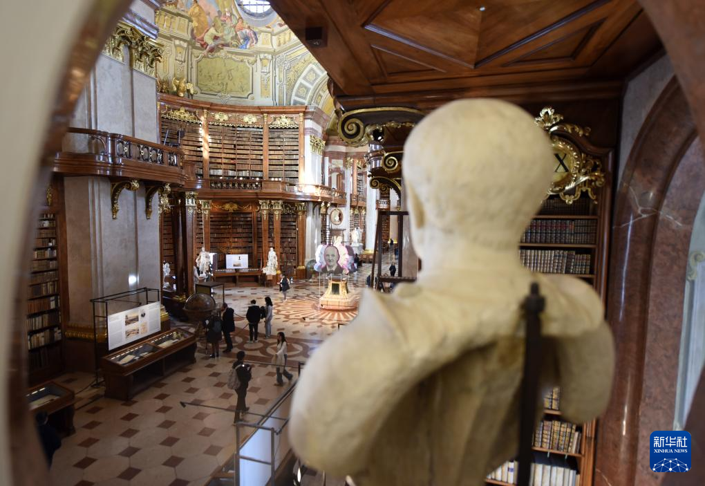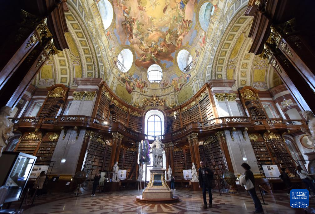 4月19日,游客在奧地利國家圖書館普隆克廳參觀。