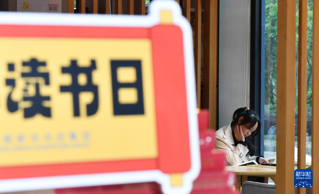 4月22日,一名讀者在衡陽市衡南縣清泉書城內讀書。