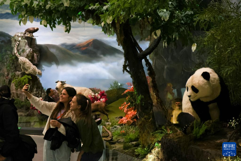 4月22日,參觀者在大熊貓國際文化交流中心內拍照。