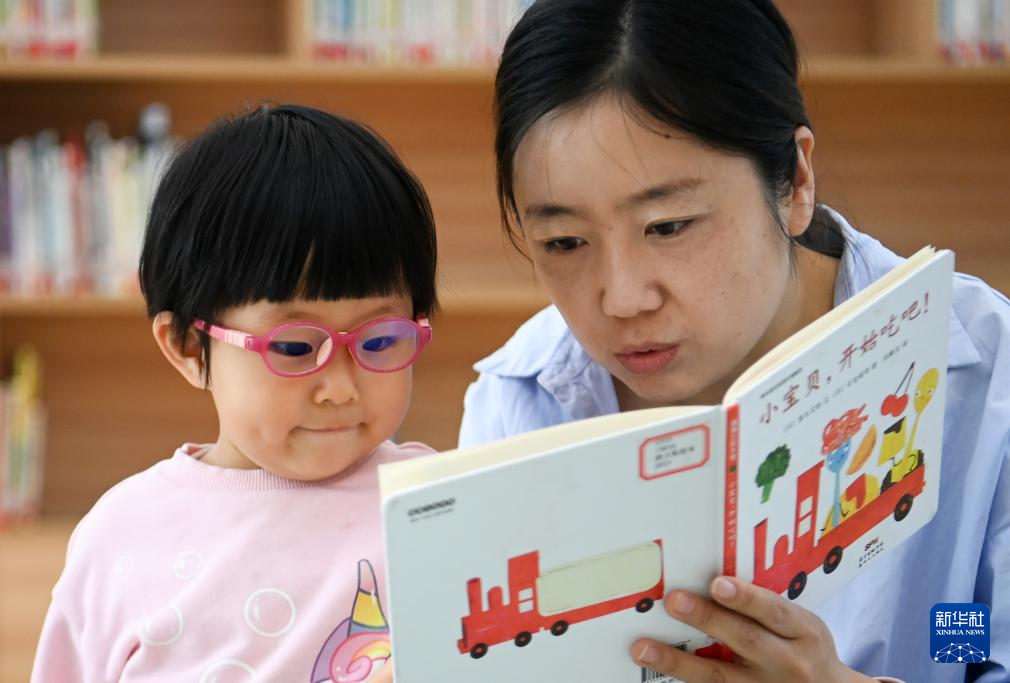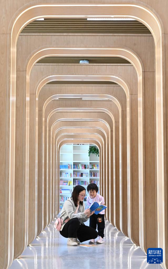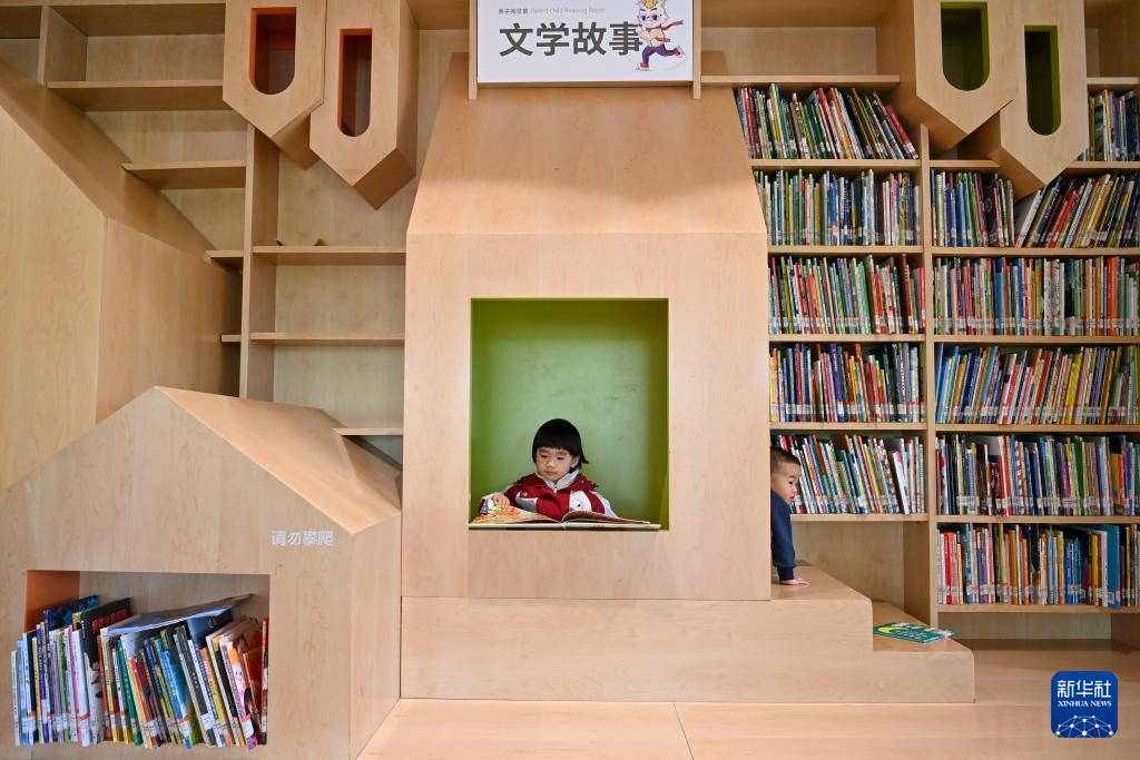 4月23日,一名小朋友及其家長在陜西省圖書館高新館區閱讀。
