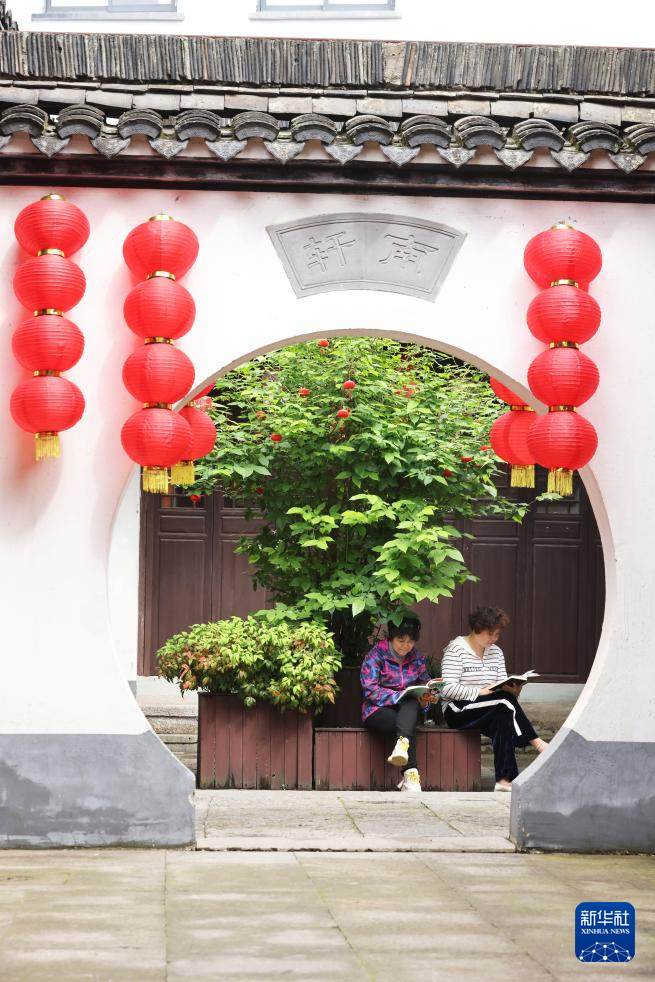 4月23日,居民在浙江省湖州市德清縣乾元鎮國學圖書館閱讀書籍。