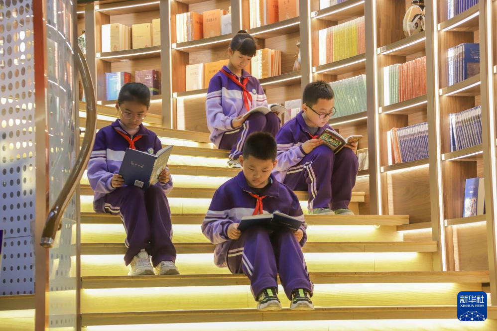 4月23日,河北省遵化市第三實驗小學的學生在新華書店閱讀書籍。