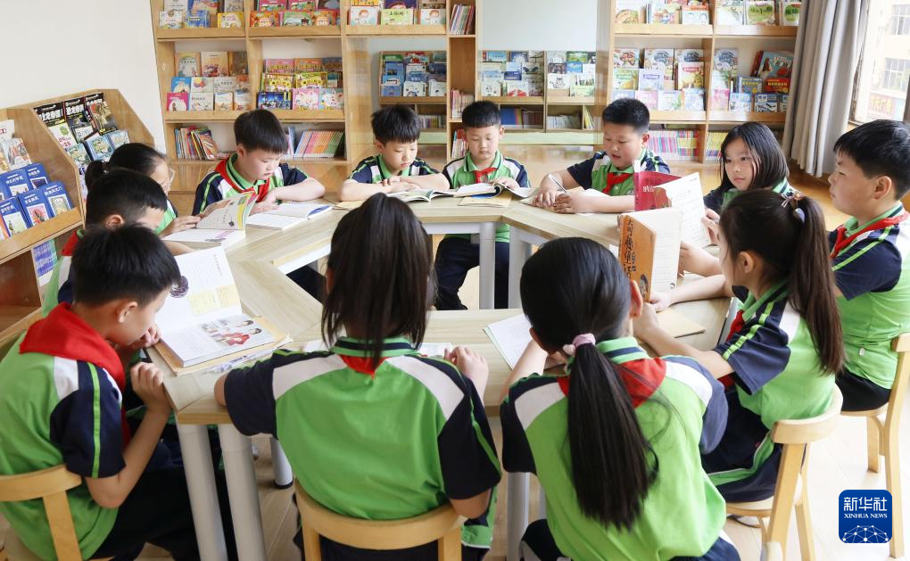 4月23日,河南省開封市向陽路小學學生在閱覽室讀書。