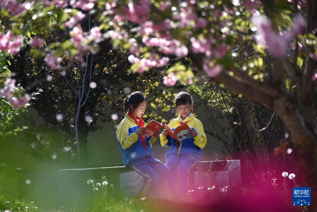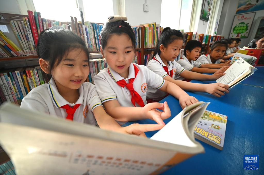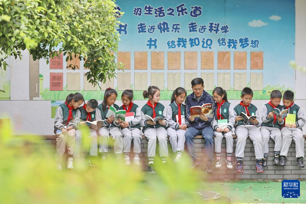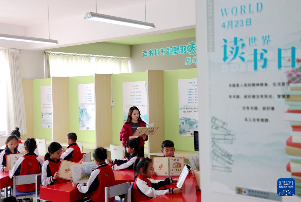 4月23日,河南省洛陽市汝陽縣第二實驗小學的小學生在讀書。