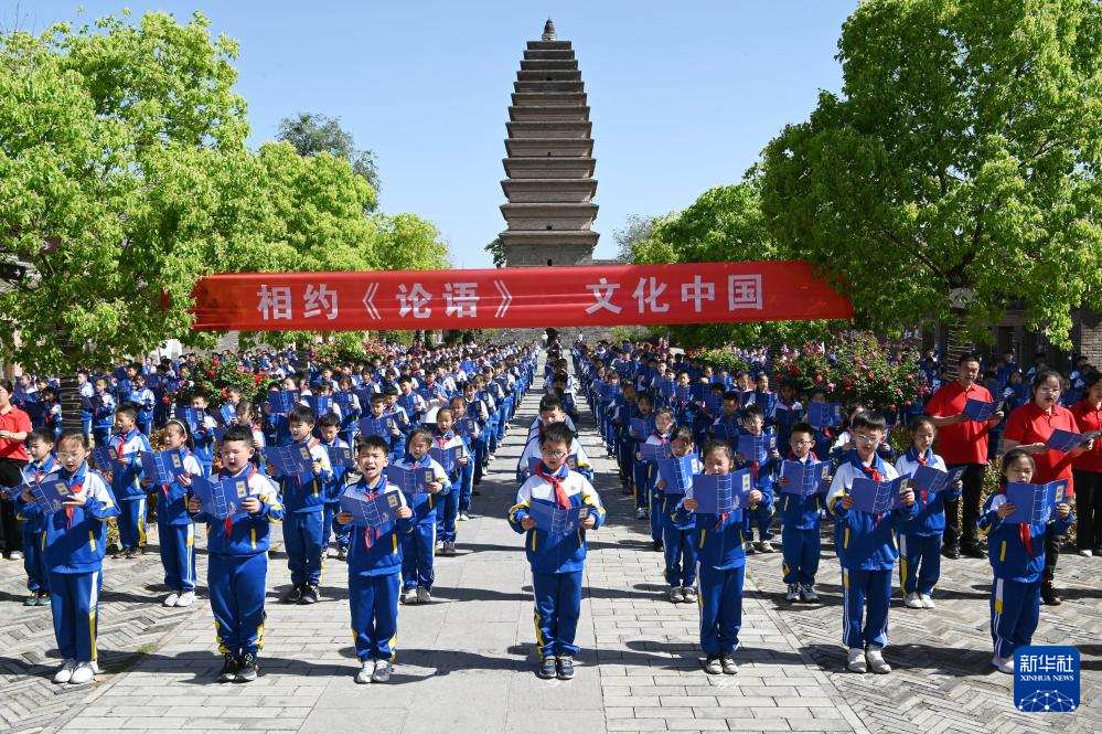4月23日,在河南省沁陽市博物館,沁陽市第一小學師生在誦讀《論語》。