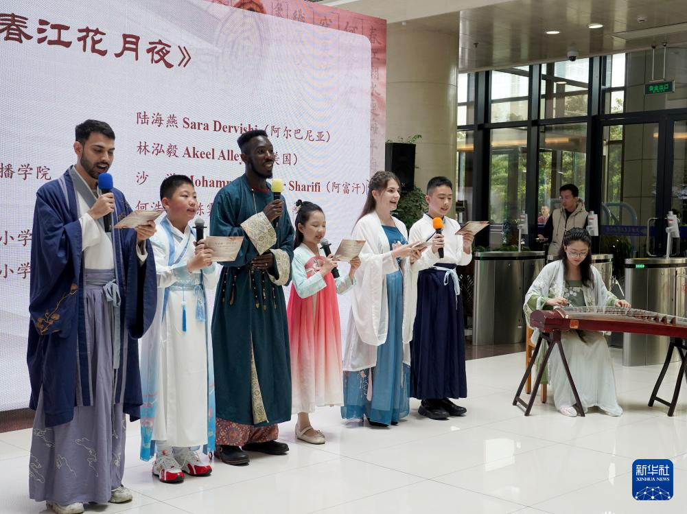 4月23日,學生們在上海交通大學圖書館誦讀《春江花月夜》。