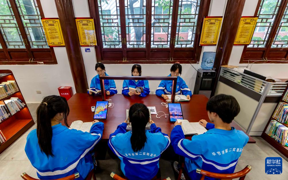 4月23日,學生在貴州省黔西市水西公園文峰書院閱讀書籍。