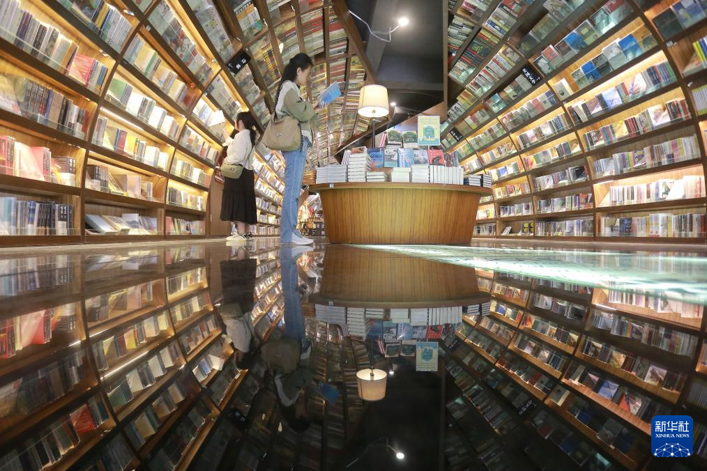 4月23日,讀者在江蘇揚州的鐘書閣書店內閱讀圖書。