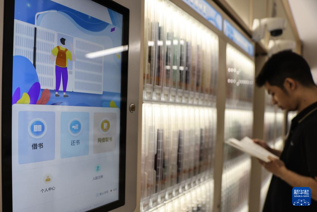4月23日,讀者在海南省圖書館24小時自助圖書館內閱讀。