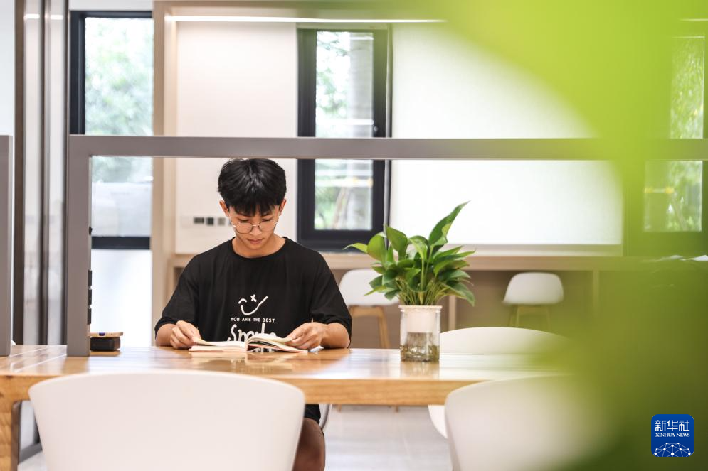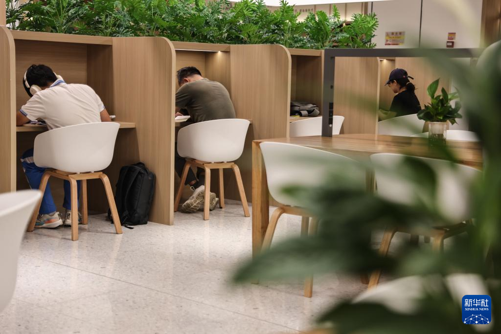 4月23日,讀者在海南省圖書館24小時自助圖書館內學習。