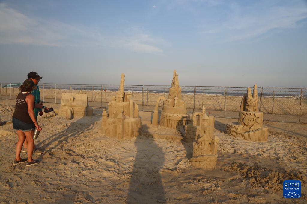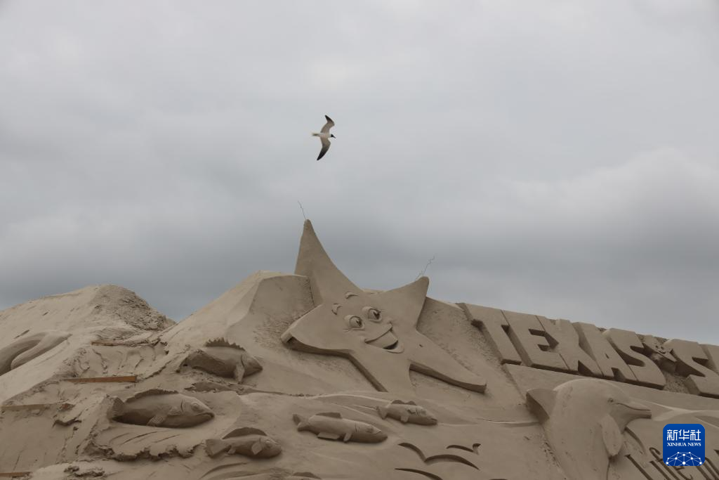 4月20日,人們在美國得克薩斯州阿蘭瑟斯港欣賞沙雕。