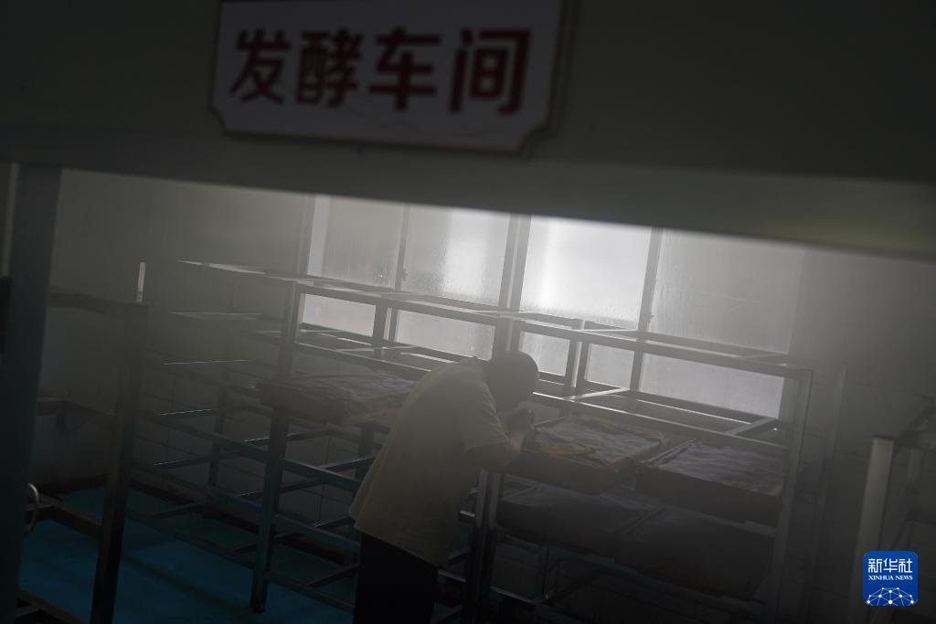江西省修水縣漫江鄉的寧紅茶制茶基地,俞旦華查看茶葉的發酵情況(3月29日攝)。