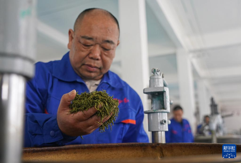 江西省修水縣漫江鄉的寧紅茶制茶基地,俞旦華將茶葉進行機械烘干(3月29日攝)。