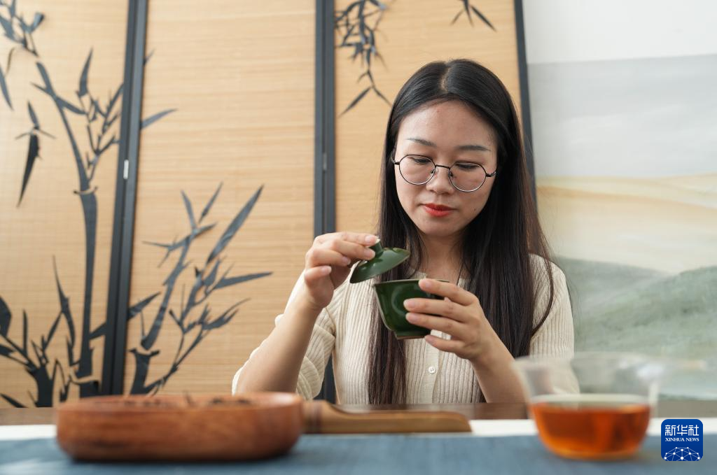 “揉捻要是沒做好,揉細了,茶葉外形不好看;揉不到位的話,又影響茶葉的發酵?!庇岬┤A邊說邊向青年員工展示手工揉捻手法。在制茶人的匠心妙手下,綠葉經過神奇的轉化,改變形態、凝聚芬芳。變形后的茶葉投于熱水之中,幾個轉身,變成唇齒留香的紅茶。一杯寧紅,茶湯紅艷明亮,入口甜醇爽口,回甘持久。