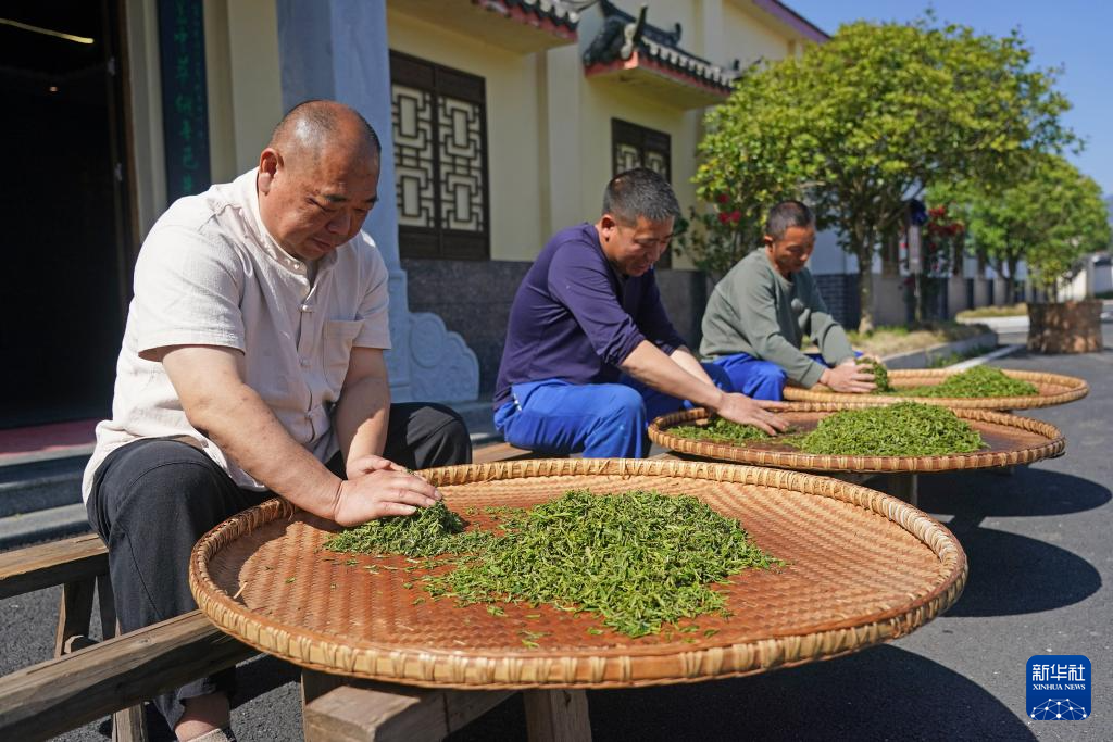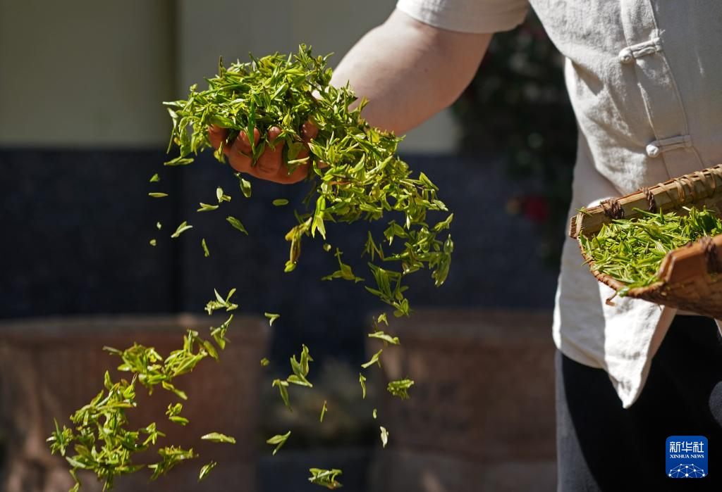 江西省修水縣漫江鄉的寧紅茶制茶基地,制茶師傅查看茶葉的萎凋情況(3月29日攝)。