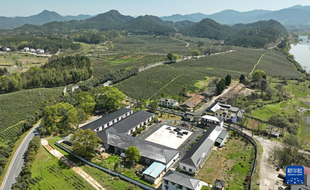 江西省修水縣漫江鄉山水之間的寧紅茶制茶基地(3月29日攝,無人機照片)。