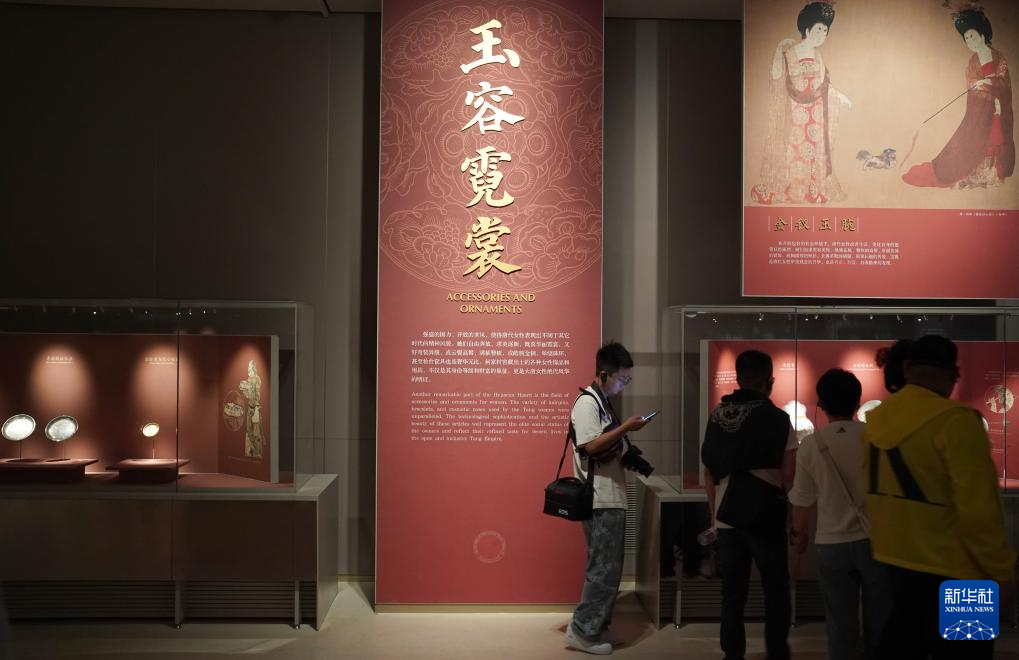4月20日,游客在陜西歷史博物館內參觀唐代文物鑲金獸首瑪瑙杯。