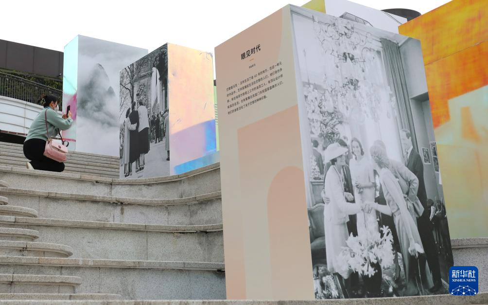 4月26日,在上海前灘太古里,市民在主題為“眼見時代”的法國攝影家馬克·呂布攝影作品展區內合影留念。