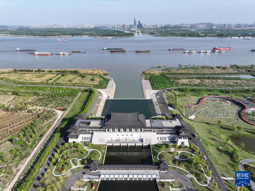 位于揚州邗江區瓜洲鎮的瓜洲泵站(無人機照片,4月24日攝)。