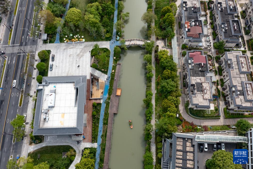 揚州古邗溝一景(無人機照片,4月24日攝)。
