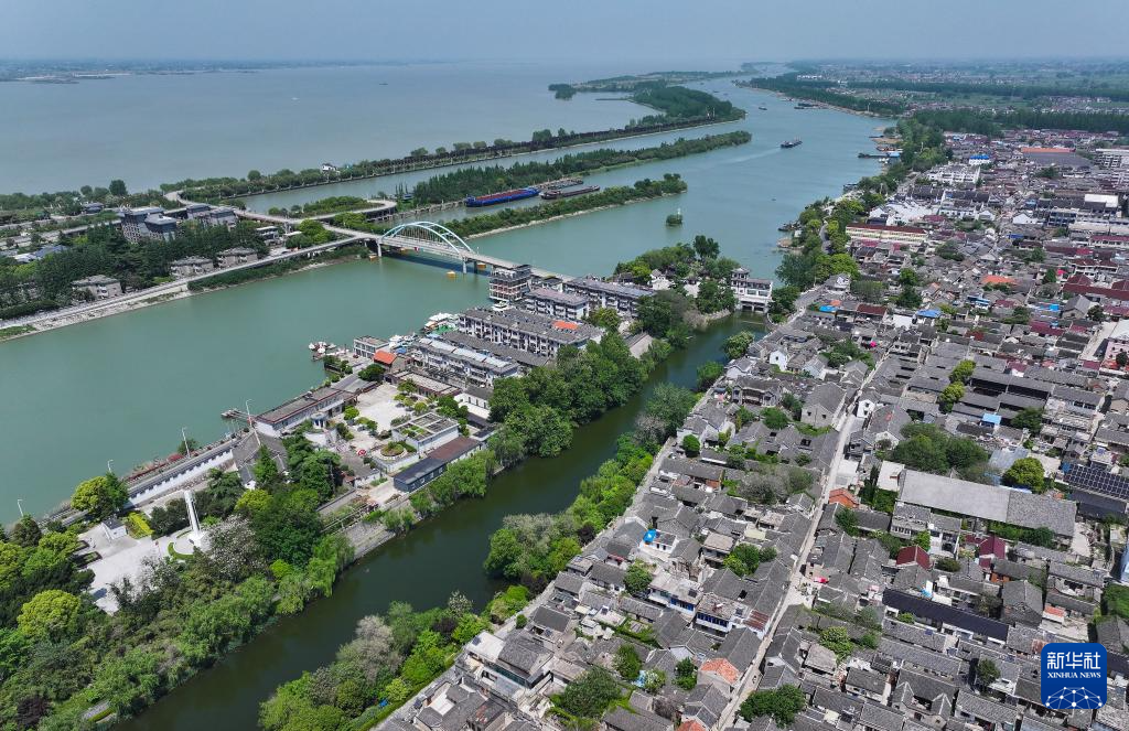 位于揚州江都區的邵伯古鎮(無人機照片,4月25日攝)。