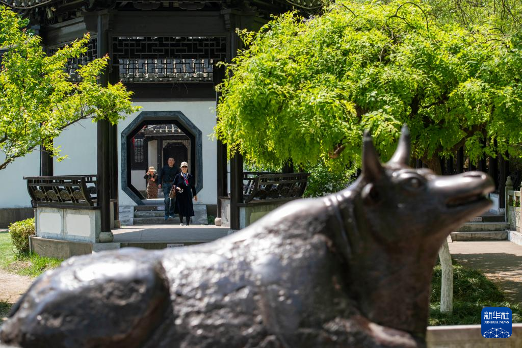 4月25日,游客在位于揚州江都區邵伯鎮的斗野園內參觀游玩。