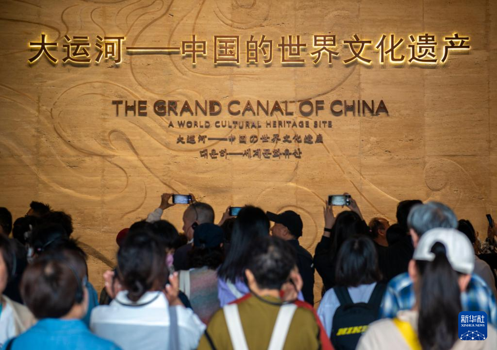 4月23日,游客在揚州中國大運河博物館參觀游覽。