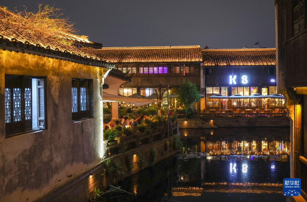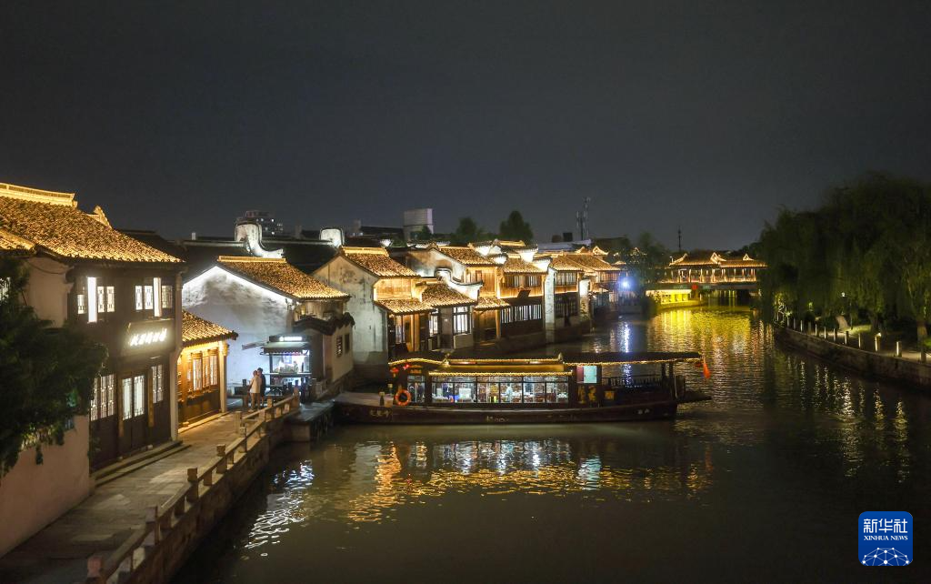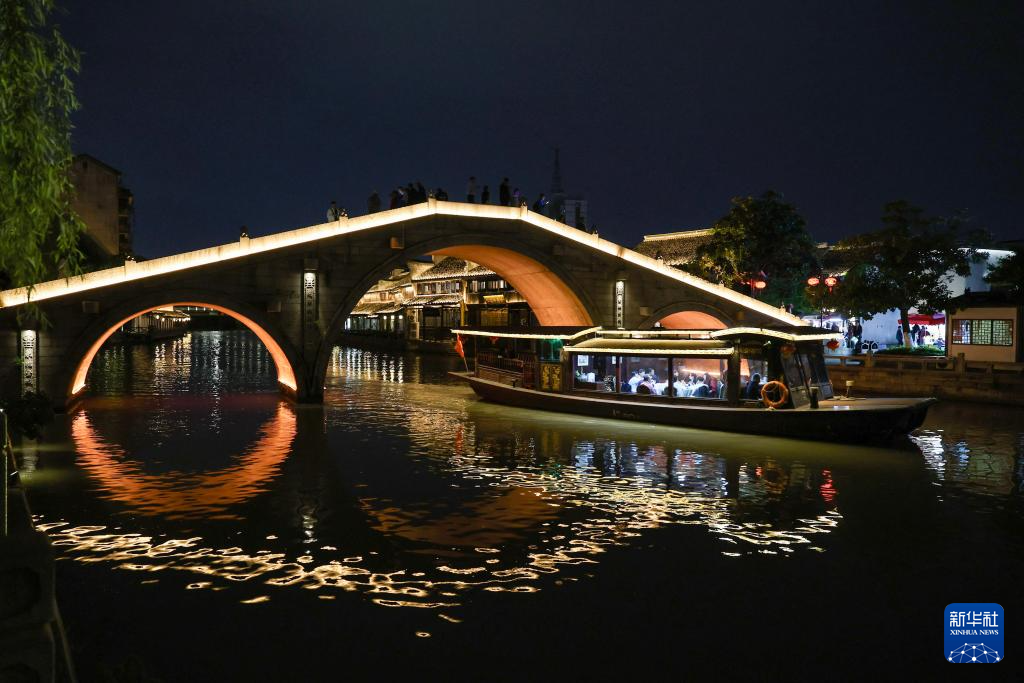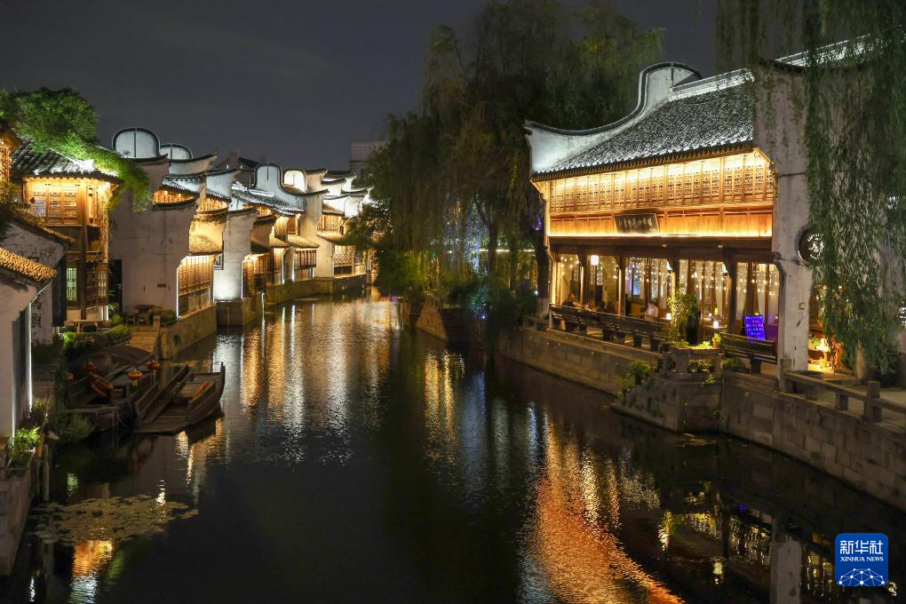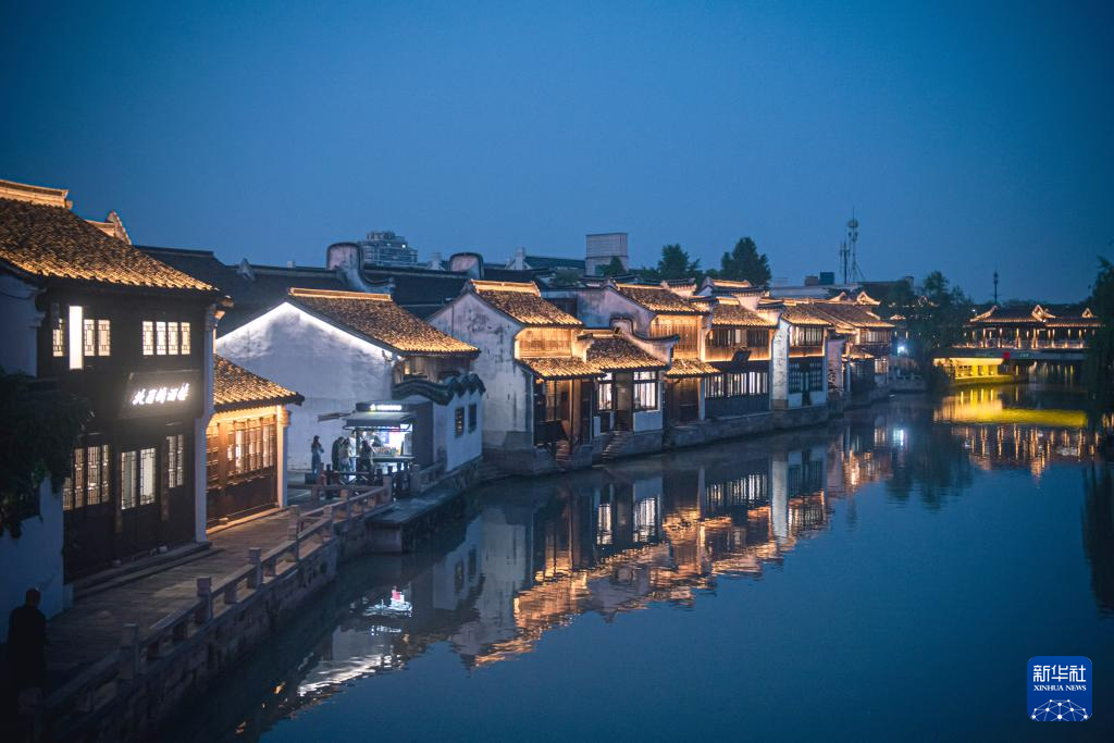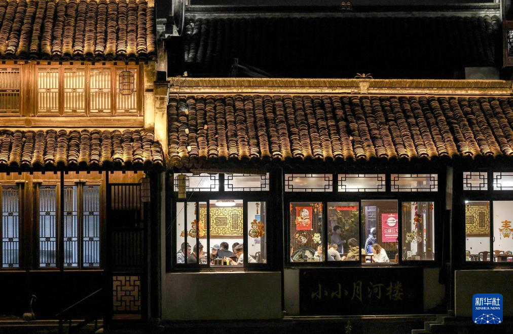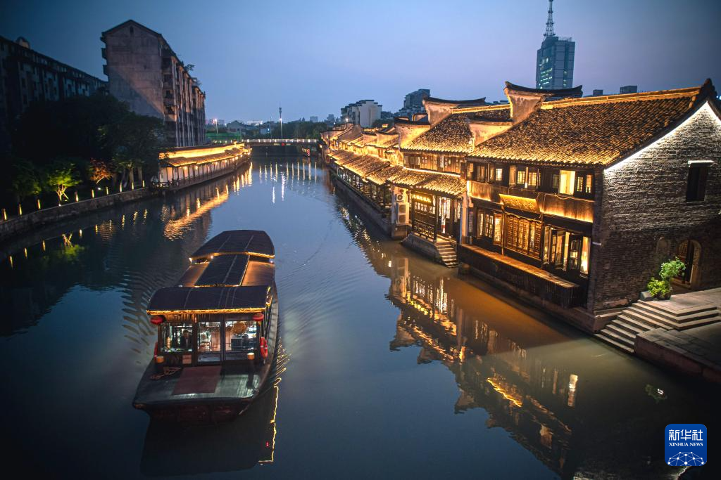 4月25日拍攝的月河歷史街區夜景。