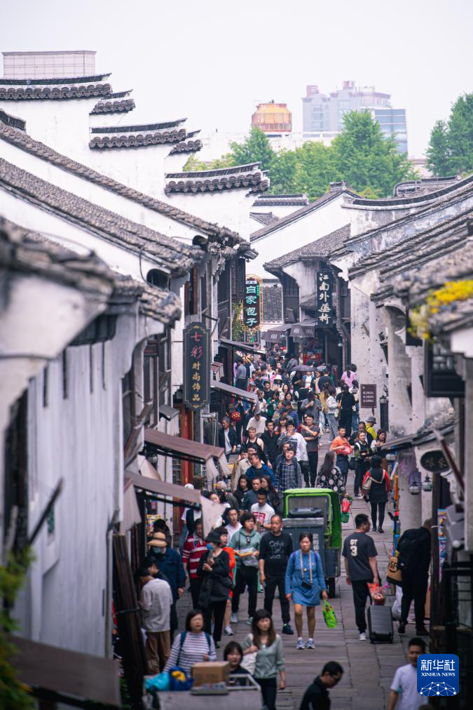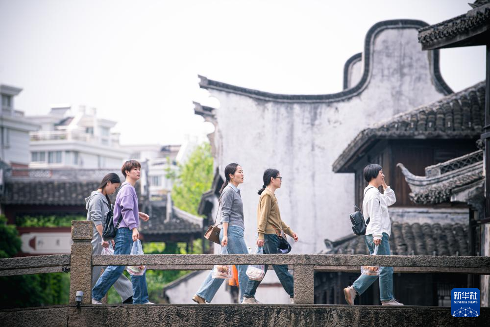 4月26日,游客在月河歷史街區游覽。