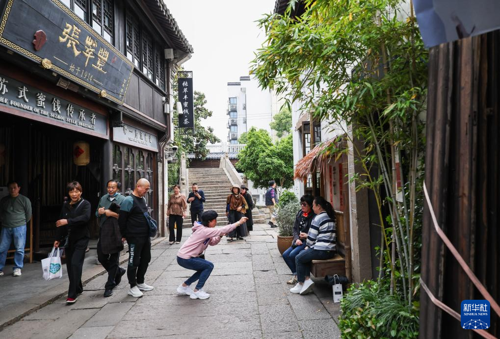 4月26日,游客在嘉興市月河歷史街區觀光游玩。