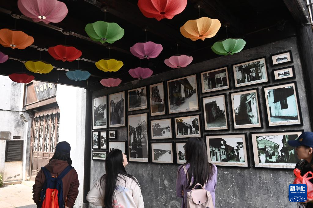 4月26日,游客在月河歷史街區觀看街區老照片。