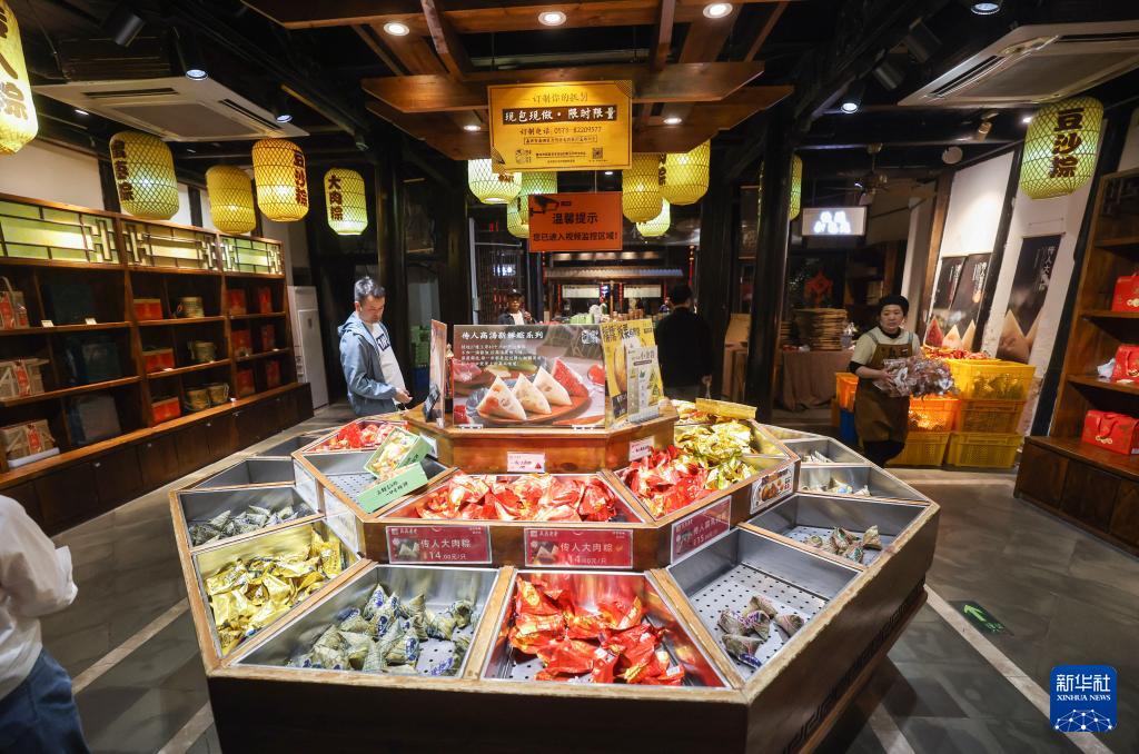4月25日,游客在月河歷史街區選購嘉興粽子。