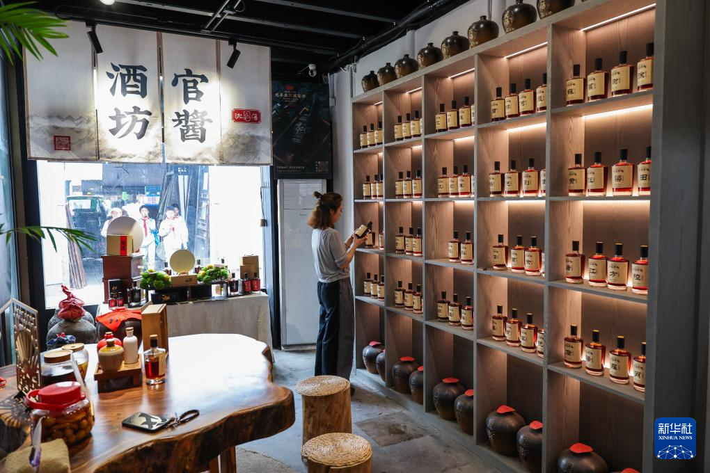 4月26日,游客在月河歷史街區的特色黃酒店選購當地特產黃酒。