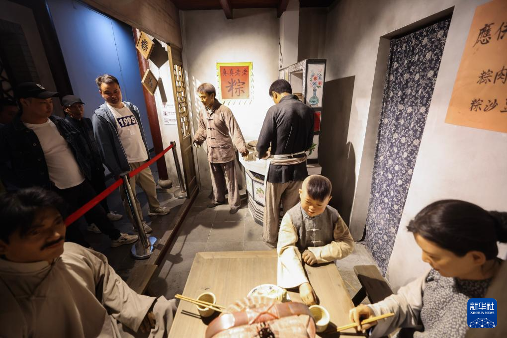 4月25日,游客在月河歷史街區的粽子文化博物館參觀。
