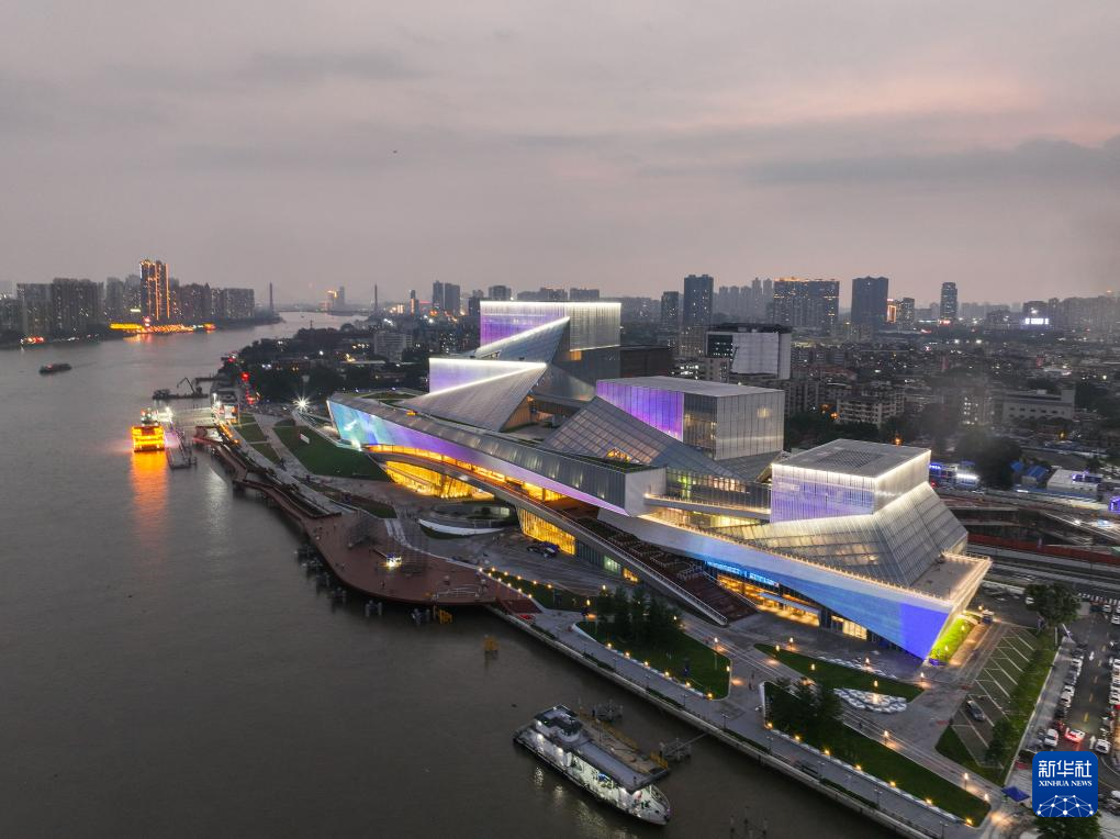 2024年4月27日拍攝的即將正式啟用的白鵝潭大灣區藝術中心(右)。