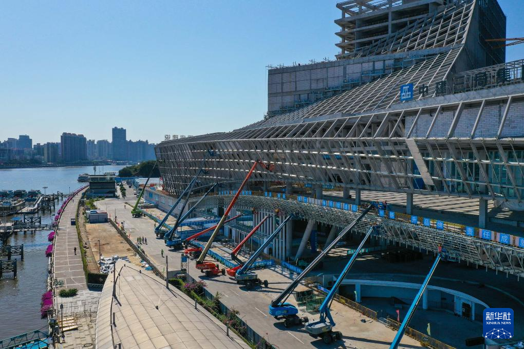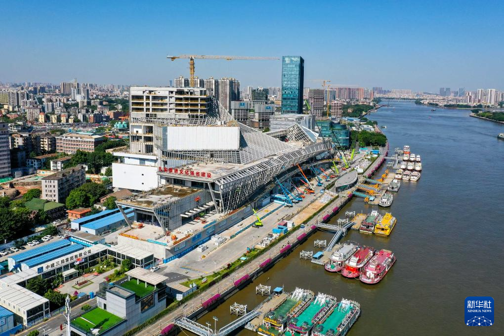 鋼結構施工階段的白鵝潭大灣區藝術中心(2022年10月12日攝)。