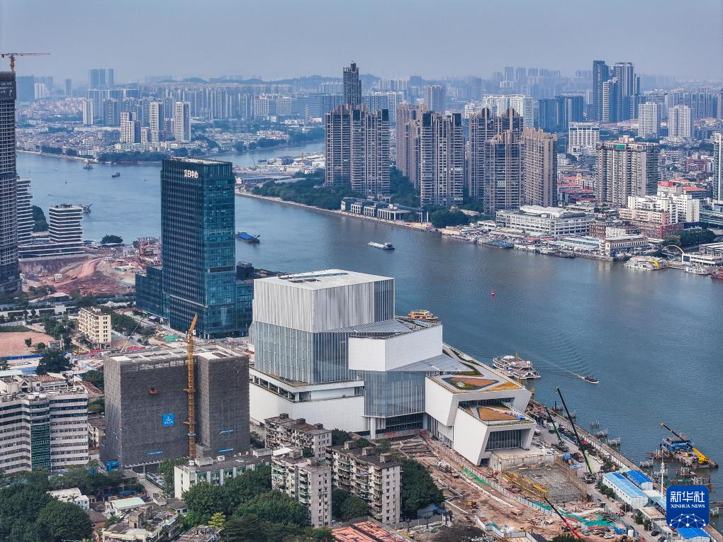 中建三局承建的白鵝潭大灣區藝術中心由中國工程院院士何鏡堂領銜設計,建筑以“文化巨輪、時光拱廊、鵝潭寫意、云山藝境”為理念,三館高低錯落、層次分明,從江岸向后逐漸由低到高、疊級而上,從遠處看有巨輪出海之態,寓意“嶺南文化乘風破浪、遠播四?!?。
